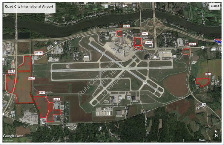 Aerial of properties for sale around the Quad-City International Airport.